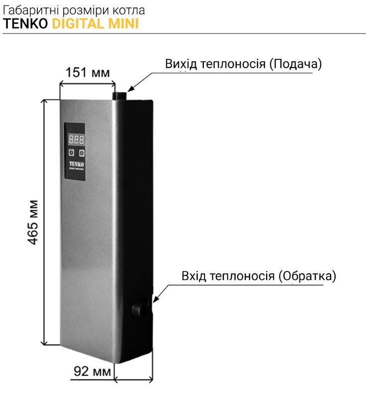- Компактність: Завдяки своєму компактному розміру, електричний котел Tenko Міні Digital ідеально підходить для невеликих приміщень, забезпечуючи ефективне опалення навіть у обмеженому просторі.