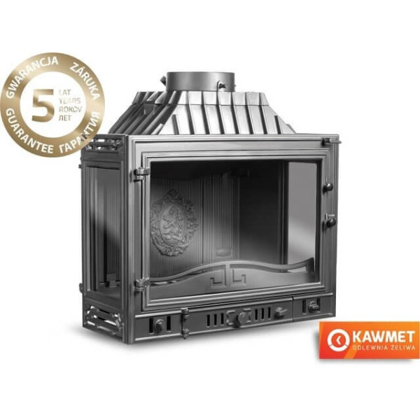 Корпус камінної топки KAWMET W4 тристороння (14,5 kW) виготовлений з високоякісного чавуну (клас EN-GJL-200). Камера згоряння закрита дверцятами з термостійкого скла. На дні камери топки розташовані чавунні колосникові грати. Під ґратами знаходиться бляшана попільничка. Передня частина зольного ящика оснащена первинною повітряною заслінкою, необхідною для спалювання палива. Повітряна заслінка може бути переміщена в два крайні положення та використовується для регулювання подачі кількості повітря в камеру згоряння. Камінна топка оснащена регулюванням тяги в димарі за допомогою валу в положенні важеля регульованого до існуючої тяги димоходу. Конструкція каміна KAWMET W4 тристороння (14,5 kW) передбачає використання виключно одного виду палива – це дрова листяних порід дерев, з високою калорійністю (дрова дуба, граба, бука тощо). Дрова хвойних порід використовувати не рекомендується, так як такий вид палива містить багато смол, які сильно забруднюють оглядове скло та димохід. Крім того, паливо для камінної топки Кавмет має містити вологість не менше 20%. Деревина зі збільшеною вологістю викликає погане згоряння і швидке забруднення скла та димоходу. Особливості монтажу камінної топки KAWMET W4 тристороння (14,5 kW) /catalog/Tovar/KAWMET/1.jpg"> Купити камінну топку KAWMET W4 тристороння (14,5 kW), Ви можете у нас в офісі або оформити замовлення через кошик з доставкою по Києву або по Україні.Камінна топка KAWMET W4 трьохстороння (14,5 kW) - особливості моделі