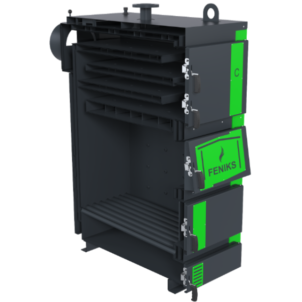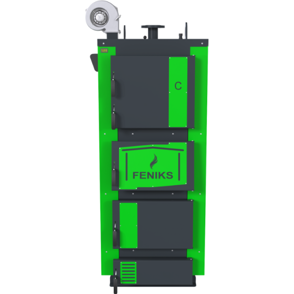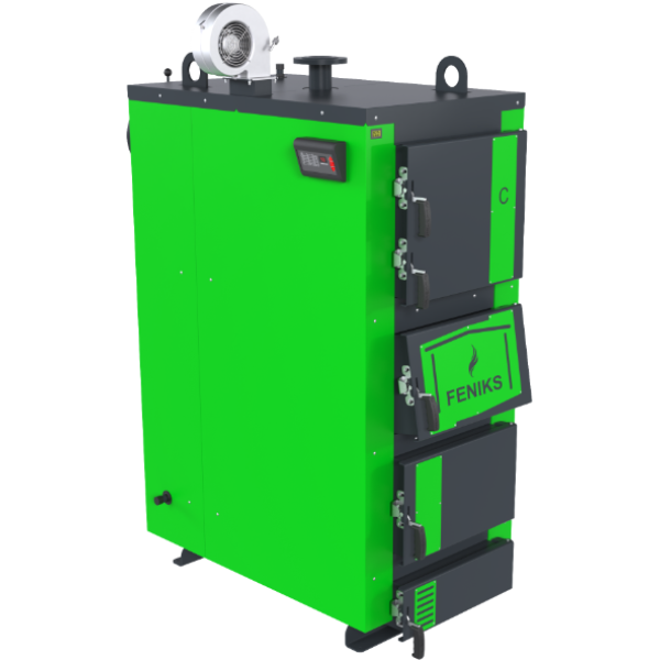 Котел твердопаливний Feniks (Фенікс) серія C 125 кВт — це високоефективний пристрій для автономного опалення приватних будинків, дач, невеликих виробничих чи комерційних приміщень. Завдяки своїй компактній конструкції та потужності у 125 кВт, модель легко впорається з обігрівом площі до 1250 м². Високий ККД, надійність конструкції та простота обслуговування роблять цей котел оптимальним вибором для покупців, які цінують економічність, якість і функціональність. Котел Feniks серії C створено спеціально для споживачів, які шукають довговічне та доступне джерело тепла в умовах зростаючих тарифів і нестабільного енергозабезпечення. Його енергонезалежність та здатність працювати на різних видах твердого палива дозволяють адаптувати систему до конкретних потреб і доступних ресурсів. Котел твердопаливний Feniks (Фенікс) серія C 125 кВт — це ідеальне поєднання енергоефективності та надійності в одному рішенні. Його сталева конструкція з товщиною теплообмінника 6 мм розроблена для тривалого використання в умовах інтенсивного навантаження. Камера згоряння має закритий тип, що забезпечує безпечну роботу, а ручний спосіб завантаження дозволяє максимально точно дозувати кількість палива в залежності від потреб користувача. Завдяки фронтальному завантаженню палива, обслуговування котла не потребує спеціальних навичок або інструментів. Встановлення можливе навіть у приміщеннях з мінімальним технічним оснащенням. А механічне управління забезпечує надійність і простоту у використанні, незалежно від наявності електропостачання. Електронний термометр у комплекті дозволяє легко контролювати температуру теплоносія, а запобіжний клапан забезпечує безпечну експлуатацію системи. Завдяки тривалому циклу горіння, Feniks серія C дозволяє підтримувати комфортну температуру в приміщенні з мінімальними втручаннями користувача. Такий котел чудово підійде для: Комплектація: 1 – Корпус котла; 2 – Камера згоряння (топка); 3 – Конвекційна частина (теплообмінник); 4 – Дверцята конвекційної частини котла; 5 – Дверцята завантажувальні; 6 – Дверцята ревізійні; 7 – Кришка отвору під вентилятор; 8 – Патрубок прямої мережної води; 9 – Патрубок зворотної мережної води; 10 – Штуцер зливу води з котла; 11 – Штуцер під запобіжний клапан; 12 – Боров; 13 – Шибер тяги топочних газів; 14 – Колосникові грати; 15 – Патрубок під терморегулятор; 16 – Водяна оболонка; 17 – Теплоізоляція корпуса; 18 – Блок автоматики управління; 19 – Вентилятор; 20 – Лючок під терморегулятор Котел твердопаливний Feniks (Фенікс) серія C 125 кВт — це практичне, економічне та довговічне рішення для опалення, яке відповідає сучасним вимогам безпеки, ефективності та екологічності. Він стане надійним джерелом тепла у вашому домі чи робочому приміщенні, забезпечуючи комфорт у будь-яку пору року. Обираючи Feniks серія C 125 кВт, ви обираєте тепло, незалежність та впевненість на роки вперед.Котел твердопаливний Feniks (Фенікс) серія C 125 кВт — надійне рішення для ефективного опалення невеликих приміщень