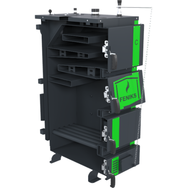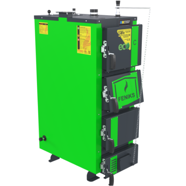 Котел твердопаливний Feniks (Фенікс) серія C 22 кВт — це високоефективний пристрій для автономного опалення приватних будинків, дач, невеликих виробничих чи комерційних приміщень. Завдяки своїй компактній конструкції та потужності у 22 кВт, модель легко впорається з обігрівом площі до 220 м². Високий ККД, надійність конструкції та простота обслуговування роблять цей котел оптимальним вибором для покупців, які цінують економічність, якість і функціональність. Котел Feniks серії C створено спеціально для споживачів, які шукають довговічне та доступне джерело тепла в умовах зростаючих тарифів і нестабільного енергозабезпечення. Його енергонезалежність та здатність працювати на різних видах твердого палива дозволяють адаптувати систему до конкретних потреб і доступних ресурсів. Котел твердопаливний Feniks (Фенікс) серія C 22 кВт — це ідеальне поєднання енергоефективності та надійності в одному рішенні. Його сталева конструкція з товщиною теплообмінника 6 мм розроблена для тривалого використання в умовах інтенсивного навантаження. Камера згоряння має закритий тип, що забезпечує безпечну роботу, а ручний спосіб завантаження дозволяє максимально точно дозувати кількість палива в залежності від потреб користувача. Завдяки фронтальному завантаженню палива, обслуговування котла не потребує спеціальних навичок або інструментів. Встановлення можливе навіть у приміщеннях з мінімальним технічним оснащенням. А механічне управління забезпечує надійність і простоту у використанні, незалежно від наявності електропостачання. Електронний термометр у комплекті дозволяє легко контролювати температуру теплоносія, а запобіжний клапан забезпечує безпечну експлуатацію системи. Завдяки тривалому циклу горіння, Feniks серія C дозволяє підтримувати комфортну температуру в приміщенні з мінімальними втручаннями користувача. Такий котел чудово підійде для: Комплектація: 1 – Корпус котла; 2 – Камера згоряння (топка); 3 – Конвекційна частина (теплообмінник); 4 – Дверцята конвекційної частини котла; 5 – Дверцята завантажувальні; 6 – Дверцята ревізійні; 7 – Кришка отвору під вентилятор; 8 – Патрубок прямої мережної води; 9 – Патрубок зворотної мережної води; 10 – Штуцер зливу води з котла; 11 – Штуцер під запобіжний клапан; 12 – Боров; 13 – Шибер тяги топочних газів; 14 – Колосникові грати; 15 – Патрубок під терморегулятор; 16 – Водяна оболонка; 17 – Теплоізоляція корпуса; 18 – Блок автоматики управління; 19 – Вентилятор; 20 – Лючок під терморегулятор Котел твердопаливний Feniks (Фенікс) серія C 22 кВт — це практичне, економічне та довговічне рішення для опалення, яке відповідає сучасним вимогам безпеки, ефективності та екологічності. Він стане надійним джерелом тепла у вашому домі чи робочому приміщенні, забезпечуючи комфорт у будь-яку пору року. Обираючи Feniks серія C 22 кВт, ви обираєте тепло, незалежність та впевненість на роки вперед.Котел твердопаливний Feniks (Фенікс) серія C 22 кВт — надійне рішення для ефективного опалення невеликих приміщень