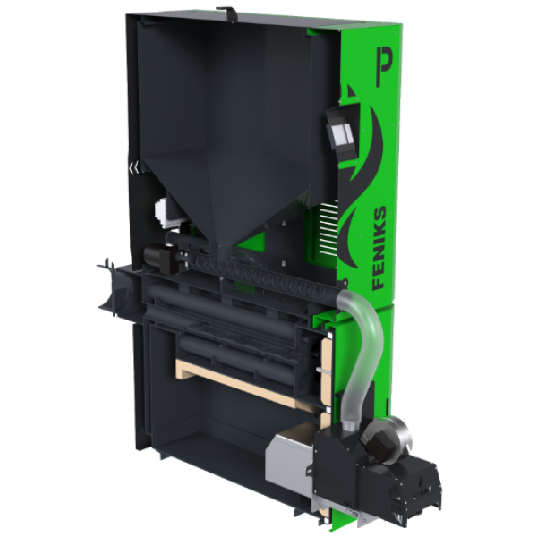 Модель Feniks P 30 кВт належить до категорії твердопаливних котлів з автоматичною подачею палива. Це означає, що після завантаження пелет у бункер, котел самостійно підтримує горіння і потрібну температуру в системі. Водонаповнені колосники рівномірно розподіляють тепло, забезпечуючи високу продуктивність і мінімальні тепловтрати.