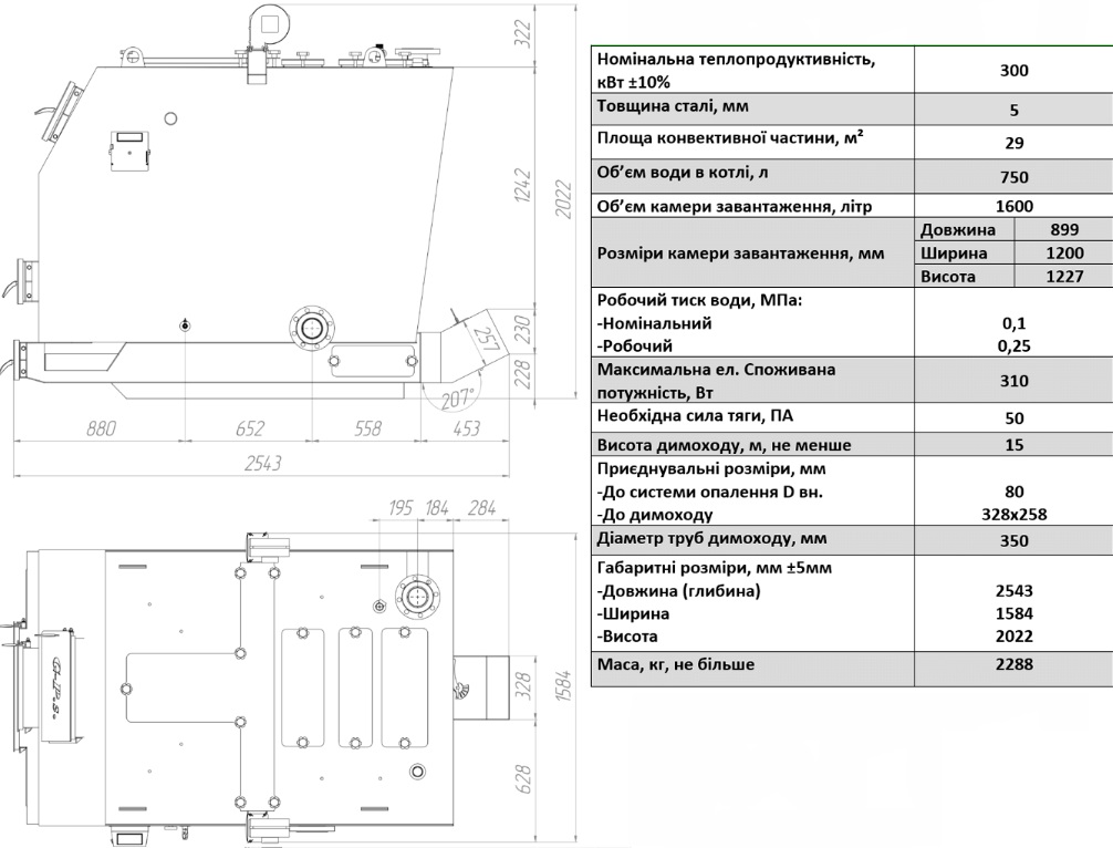 Твердопаливні котли є дуже популярними серед власників будинків, які шукають ефективний та економічний спосіб опалення своїх приміщень. Одним з найбільш надійних та ефективних твердопаливних котлів на ринку є Гефест Profi S. Gefes-Profi S - це високоякісний твердопаливний котел, який відмінно підходить для опалення будинків, котеджів та інших приміщень. Він вирізняється своєю надійністю, ефективністю та довговічністю, що робить його ідеальним вибором для тих, хто цінує якість та надійність. Однією з головних переваг Gefes-Profi S є його висока ефективність. Котел використовує тверде паливо, таке як дрова або вугілля, що дозволяє значно зменшити витрати на опалення. Крім того, він оснащений передовою системою автоматичного регулювання температури, яка дозволяє забезпечити оптимальний рівень тепла в будинку. Котел також відзначається своєю надійністю. Він виготовлений з високоякісних матеріалів, що забезпечує його довговічність та надійність. Крім того, Gefes-Profi S має високий рівень енергоефективності, що дозволяє зменшити споживання палива і витрати на опалення. Ще однією перевагою котла є його простота в управлінні. Він оснащений інтуїтивно зрозумілим і простим в управлінні панеллю керування, що дозволяє легко налаштувати й контролювати роботу котла. Крім того, Gefes-Profi S має компактний дизайн, що дозволяє з легкістю встановити його в будь-якому приміщенні. Він також оснащений системою автоматичного видалення золи, що спрощує процес обслуговування котла. У підсумку, твердопаливний котел Gefes-Profi S - це відмінний вибір для тих, хто шукає надійний, ефективний та економічний спосіб опалення свого будинку. Його висока ефективність, надійність та простота в управлінні роблять його ідеальним вибором для будь-якого власника будинку. 1-камера згорання (топка); 2-люк зольника; 3-зольник; 4-водонаповненні колосники; 5-теплоносий; 6-люк шуровки; 7-теплоізоляційний матеріал; 8-засипний люк; 9-мікропроцесорний блок керування; 10-конвективна частина; 11-вентилятор; 12-розподільник вторинного повітря; 13-кран зливу; 14- патрубок зворотного трубопроводу; 15-нижні люки очистки димообертів; 16-димовий боров; 17-рукоять ручного керування тяги; 18- верхній люк очистки димообертів; 19 - патрубок подаючого трубопроводу; 20 – аналоговий термометр.Твердопаливний котел Gefes-Profi S 300 кВт (Гефест)