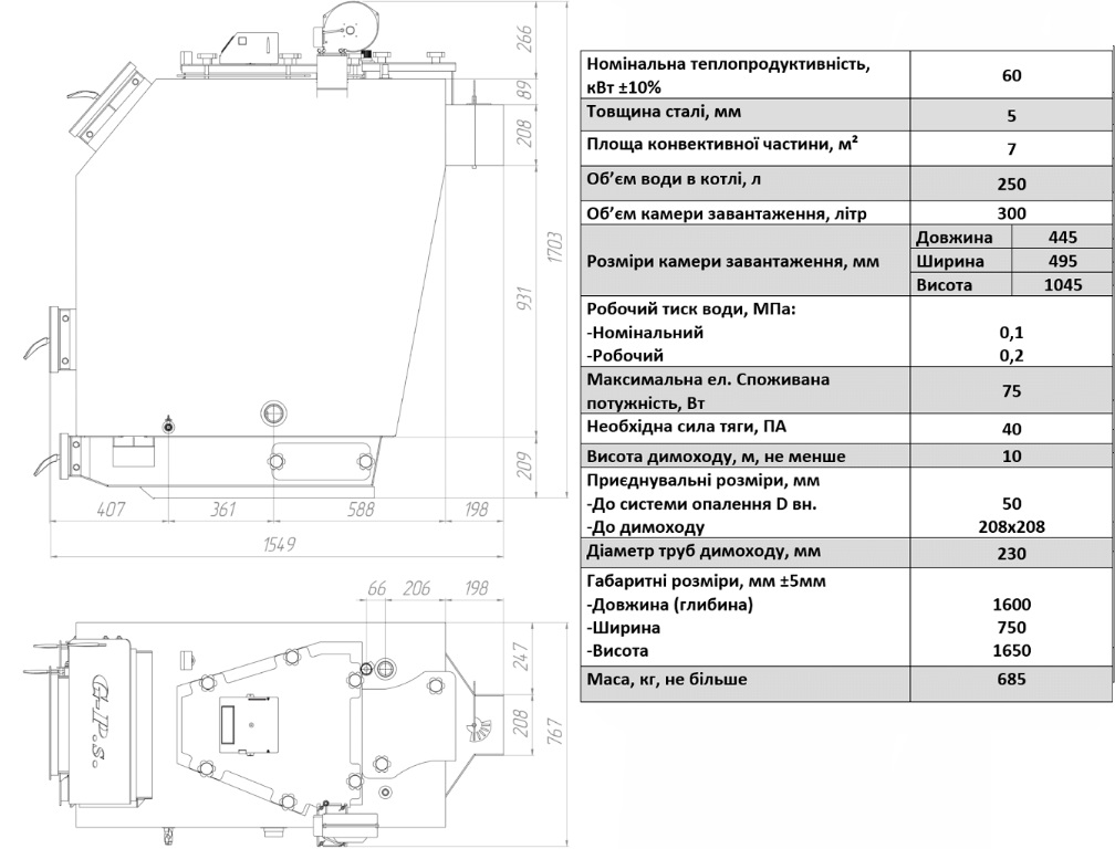 Твердопаливні котли є дуже популярними серед власників будинків, які шукають ефективний та економічний спосіб опалення своїх приміщень. Одним з найбільш надійних та ефективних твердопаливних котлів на ринку є Гефест Profi S. Gefes-Profi S - це високоякісний твердопаливний котел, який відмінно підходить для опалення будинків, котеджів та інших приміщень. Він вирізняється своєю надійністю, ефективністю та довговічністю, що робить його ідеальним вибором для тих, хто цінує якість та надійність. Однією з головних переваг Gefes-Profi S є його висока ефективність. Котел використовує тверде паливо, таке як дрова або вугілля, що дозволяє значно зменшити витрати на опалення. Крім того, він оснащений передовою системою автоматичного регулювання температури, яка дозволяє забезпечити оптимальний рівень тепла в будинку. Котел також відзначається своєю надійністю. Він виготовлений з високоякісних матеріалів, що забезпечує його довговічність та надійність. Крім того, Gefes-Profi S має високий рівень енергоефективності, що дозволяє зменшити споживання палива і витрати на опалення. Ще однією перевагою котла є його простота в управлінні. Він оснащений інтуїтивно зрозумілим і простим в управлінні панеллю керування, що дозволяє легко налаштувати й контролювати роботу котла. Крім того, Gefes-Profi S має компактний дизайн, що дозволяє з легкістю встановити його в будь-якому приміщенні. Він також оснащений системою автоматичного видалення золи, що спрощує процес обслуговування котла. У підсумку, твердопаливний котел Gefes-Profi S - це відмінний вибір для тих, хто шукає надійний, ефективний та економічний спосіб опалення свого будинку. Його висока ефективність, надійність та простота в управлінні роблять його ідеальним вибором для будь-якого власника будинку. 1-камера згорання (топка); 2-люк зольника; 3-зольник; 4-водонаповненні колосники; 5-теплоносий; 6-люк шуровки; 7-теплоізоляційний матеріал; 8-засипний люк; 9-мікропроцесорний блок керування; 10-конвективна частина; 11-вентилятор; 12-розподільник вторинного повітря; 13-кран зливу; 14- патрубок зворотного трубопроводу; 15-нижні люки очистки димообертів; 16-димовий боров; 17-рукоять ручного керування тяги; 18- верхній люк очистки димообертів; 19 - патрубок подаючого трубопроводу; 20 – аналоговий термометр.Твердопаливний котел Gefes-Profi S 60 кВт (Гефест)