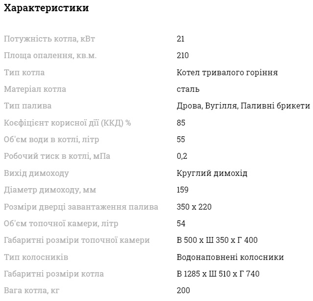 - Надійна сталева конструкція товщиною 4 мм, «водяна сорочка» між теплообмінником і корпусом;