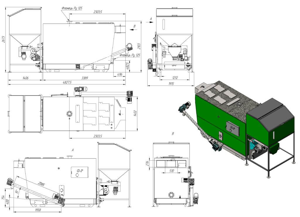 Котел твердопаливний з автоматичною подачею палива (автоматизований комплекс) – інноваційна розробка серед котлів промислового призначення. Ідеальне рішення для використання як паливо пелет із соломи. Саме цей вид палива максимально дешевий для опалення с/г підприємств. Також цей котел дуже ефективно буде використовувати всі види пелет з різним ступенем зольності та калорійності. Яка особливість робить котел з автоподачею Gefest-profi А максимально універсальним. p> Комплекс виконаний з товстої жароміцної сталі високої європейської якості. Конструкція передбачає наявність двох автономних котлів і між ними бункера. Кожен з цих котлів має функцію управління роботою, подачі пелети, і видалення золи, що накопичилося. У кожного з цих котлів свій ретортний пеллетний пальник, з автоматикою. Бункер має великий обсяг палива, яке може забезпечити безперебійну роботу до 7 робочих днів. Від цього бункера паливо передають для спалювання в котли – 2 шнекові пристрої. Також є спеціальні ємності, куди через спеціальний стрічковий транспортер потрапляє віддалена зола. h3>Котел з автоподачею Gefest-profi А 500 кВт – мінімум витрат на опалення