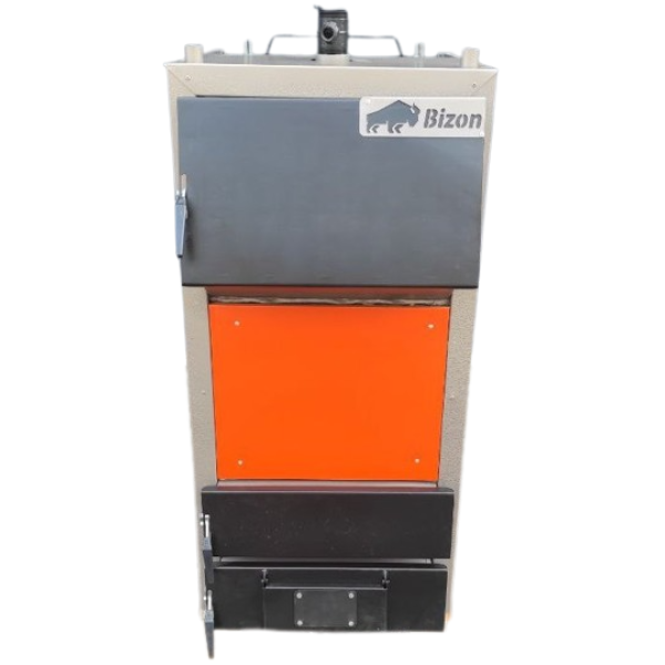 Котел шахтного типу Bizon F-15 Termo 15 кВт — це сучасне твердопаливне опалювальне обладнання, створене для стабільного та економного обігріву приватних будинків, господарських приміщень, майстерень, СТО чи адміністративних об'єктів площею до 150 м². Завдяки продуманій конструкції та високому ККД (до 90%), ця модель стане надійним партнером у зимовий сезон, забезпечуючи тепло, безпеку та зниження витрат на паливо. Котел Bizon F Termo належить до шахтного типу: топкова камера та теплообмінник розташовані вертикально, що забезпечує повне згоряння палива й тривалу тепловіддачу. Принцип роботи заснований на піролізі — у першій камері дрова або вугілля тліють із мінімальною подачею повітря, виділяючи гази, які в другій камері допалюються завдяки подачі кисню через форсунку. Це підвищує тепловіддачу, зменшує кількість диму та золи, а також дозволяє зменшити витрату палива до 30% (при використанні додаткової автоматики). Тривалість горіння на одному завантаженні — від 8 до 12 годин (в залежності від типу палива). У деяких випадках при використанні якісного вугілля цей показник сягає двох діб. Власник може контролювати процес спалювання механічно або ж налаштувати автоматизовану систему для ще більшої зручності. Bizon F-15 Termo 15 кВт зручний у використанні — фронтальне завантажувальне вікно розміром 410×300 мм дозволяє легко закладати дрова або вугілля, а перепускний клапан запобігає виходу диму у приміщення. Конструкція розрахована на безпечну експлуатацію без потреби у спеціальному технічному обслуговуванні. Котел добре адаптований до умов українських зим і розрахований на багаторічну експлуатацію — понад 15 років. Його обирають як власники приватних будинків, так і керівники невеликих підприємств чи установ, яким потрібне надійне, недороге та просте рішення для опалення.Котел шахтного типу Bizon F-15 Termo 15 кВт – ефективне рішення для опалення до 150 м²