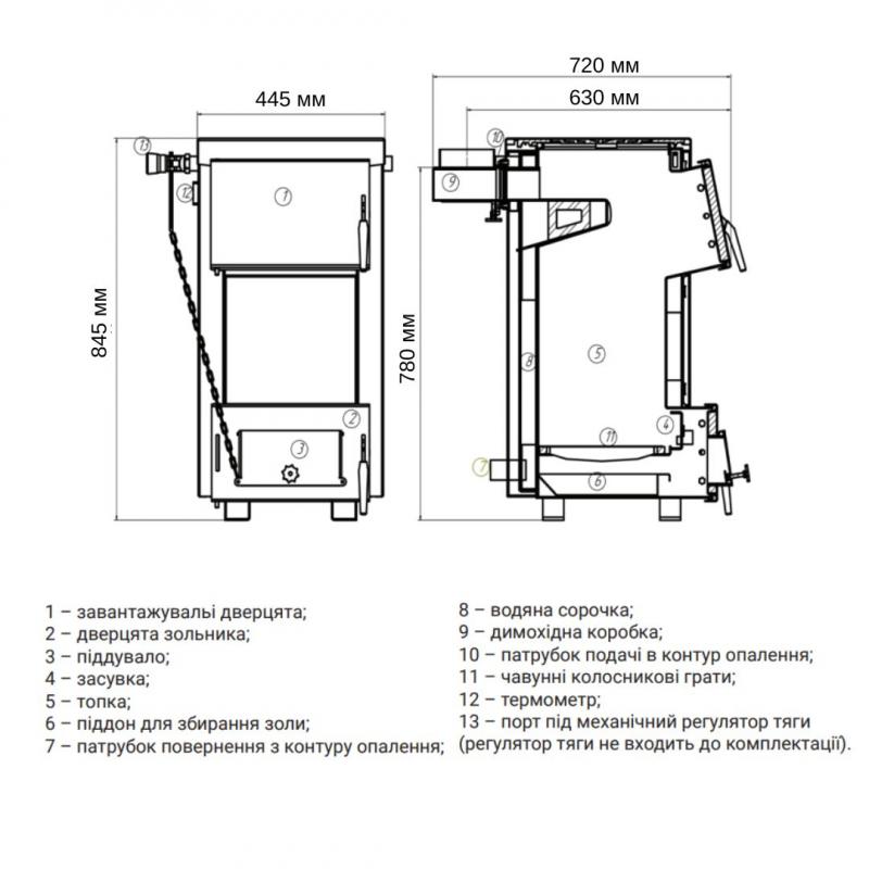 - Котел твердопаливний водогрійний опалювальний - 1 шт.;