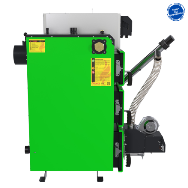 Пелетний котел Feniks Серія B pellet 10 кВт — це сучасне автоматизоване рішення для економного та стабільного опалення житлових і комерційних об’єктів. Котел працює на деревних та агропелетах, забезпечуючи високий ККД, мінімальне втручання користувача та комфортну експлуатацію протягом усього опалювального сезону. Дана модель ідеально підходить для: Потужність 10 кВт дозволяє ефективно обігрівати приміщення площею до 100 м², підтримуючи стабільну температуру без різких перепадів. Пелетний котел Feniks Серія B pellet орієнтований на користувачів, які цінують автоматизацію, економію палива та сучасний підхід до опалення. Пелетний котел Feniks Серія B pellet 10 кВт поєднує в собі інженерну надійність, продуману конструкцію та зручність у щоденному використанні: Пелетний котел Feniks Серія B pellet розроблений з акцентом на максимальний комфорт користувача та мінімальні експлуатаційні витрати. Автоматичне завантаження палива усуває необхідність частого втручання, що особливо важливо для бізнесу та об’єктів з постійною потребою в теплі. Ключовим елементом системи є пелетний пальник, який забезпечує стабільне та контрольоване згоряння палива. Завдяки електронному управлінню котел самостійно регулює інтенсивність горіння відповідно до заданих параметрів температури, що гарантує економну витрату пелет і комфортний мікроклімат у приміщенні. Закрита камера згоряння підвищує безпеку експлуатації та сприяє більш ефективному використанню теплової енергії. Чавунна колосникова решітка витримує високі температури та має тривалий ресурс роботи навіть при інтенсивному використанні. Теплообмінник виготовлений зі сталі товщиною 5 мм, що забезпечує оптимальний баланс між теплопередачею та міцністю. Завдяки цьому котел швидко нагріває теплоносій і підтримує стабільну роботу системи опалення. Керування котлом здійснюється через електронний блок, який відповідає за: Для користувачів, які прагнуть ще більшого комфорту, передбачена можливість встановлення Wi-Fi модуля, що дозволяє керувати котлом дистанційно — з телефону або комп’ютера. Комплектація У стандартну комплектацію пелетного котла Feniks Серія B pellet 10 кВт входить: Це дозволяє швидко підготувати обладнання до запуску без необхідності додаткових покупок. Пелетний котел Feniks Серія B pellet 10 кВт — це сучасне рішення для тих, хто хоче поєднати економічність, автоматизацію та надійність. Він ідеально підходить як для приватного використання, так і для малого бізнесу, забезпечуючи стабільне тепло з мінімальними зусиллями з боку користувача. Обираючи пелетний котел Feniks Серія B pellet, ви інвестуєте у комфортне, екологічне та прогнозоване опалення на багато років уперед.Пелетний котел Feniks Серія B pellet 10 кВт — автоматизоване опалення з високою ефективністю