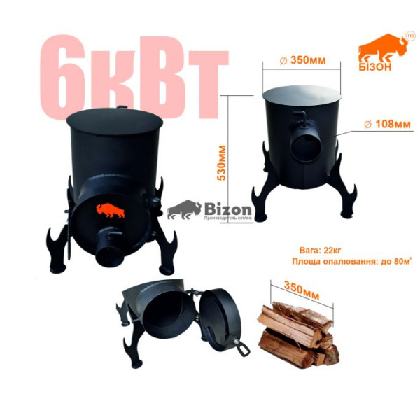 Основні переваги печі Буржуйка Bizon 6кВт з плитою: