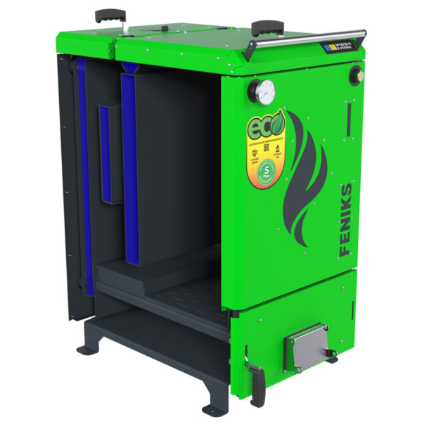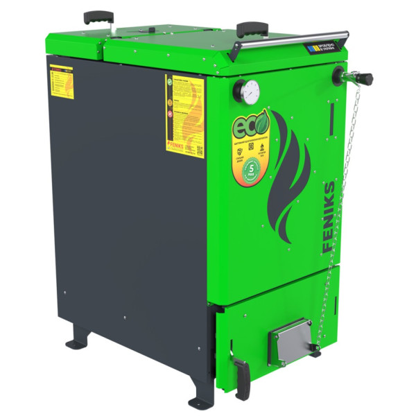 Шахтний твердопаливний котел Feniks серії I 16 кВт — це сучасний котел тривалого горіння, розроблений для стабільного та економного опалення житлових і комерційних приміщень. Завдяки шахтній конструкції та продуманій системі подачі повітря, котел забезпечує тривалу роботу на одному завантаженні палива та високий рівень теплової віддачі. Дана модель оптимально підходить для: Потужність 16 кВт дозволяє ефективно обігрівати приміщення площею до 160 м², забезпечуючи комфортний мікроклімат навіть у холодний період року. Шахтний твердопаливний котел Feniks серії I — це вибір для тих, хто шукає енергонезалежне, надійне та довговічне джерело тепла. Шахтний твердопаливний котел Feniks серії I 16 кВт має низку переваг, які вигідно відрізняють його від класичних котлів традиційного горіння: Шахтний твердопаливний котел Feniks серії I створений з урахуванням практичних потреб користувачів, які цінують простоту, ефективність і надійність. Завдяки закритій камері згоряння шахтного типу, процес горіння відбувається контрольовано та стабільно. Повітря подається таким чином, щоб паливо згорало поступово, а не миттєво, як у звичайних котлах. Це дозволяє досягти тривалого горіння та зменшити кількість завантажень протягом доби. Котел обладнаний фронтальними дверцятами завантаження, що робить процес закладки палива зручним навіть у невеликих котельнях. Ручний тип розпалювання простий і надійний, не потребує складних електронних компонентів. Управління роботою котла можливе у двох варіантах: Така можливість вибору комплектації дозволяє адаптувати шахтний твердопаливний котел Feniks серії I 16 кВт під конкретні потреби користувача — від простого побутового використання до більш автоматизованих систем опалення. Завдяки продуманій конструкції теплообмінника котел швидко передає тепло теплоносію, забезпечуючи рівномірний прогрів усієї системи опалення. Це особливо важливо для приміщень, де потрібна стабільна температура без різких коливань. Котел виготовлений в Україні з дотриманням сучасних стандартів якості та має 36 місяців офіційної гарантії від виробника, що підтверджує його надійність та довговічність. Шахтний твердопаливний котел Feniks серії I 16 кВт — це ефективне, економічне та надійне рішення для опалення будинків і комерційних приміщень. Він поєднує в собі тривале горіння, універсальність палива, міцну конструкцію та можливість вибору типу управління. Обираючи шахтний твердопаливний котел Feniks серії I, ви інвестуєте у стабільне тепло, енергонезалежність та комфорт на довгі роки.Шахтний твердопаливний котел Feniks серії I, 16 кВт — ефективне рішення тривалого горіння для будинку та бізнесу