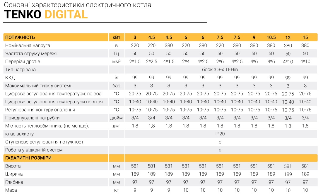 Основні переваги котла Tenko Digital, 10,5 кВт 380В: