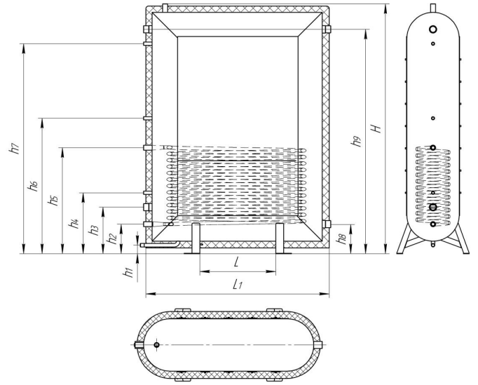 h3, h4, h9 – патрубки подаючих та зворотніх магістралей;