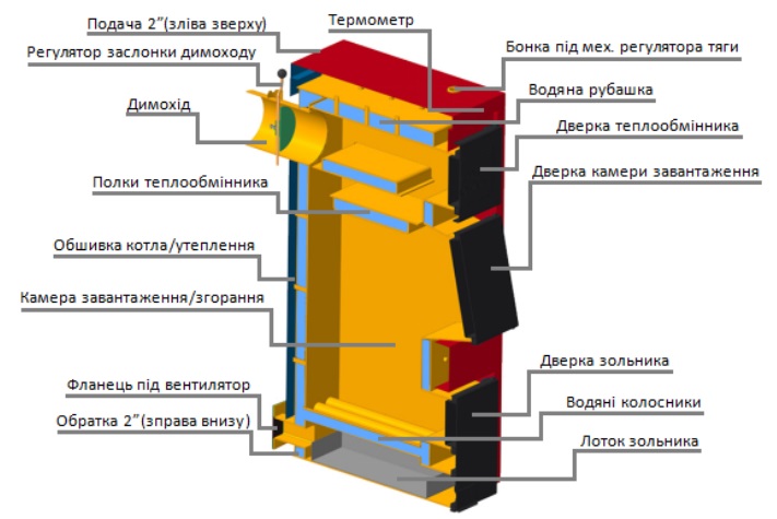 - Обшивка котла виконана з якісно оцинкований сталі;