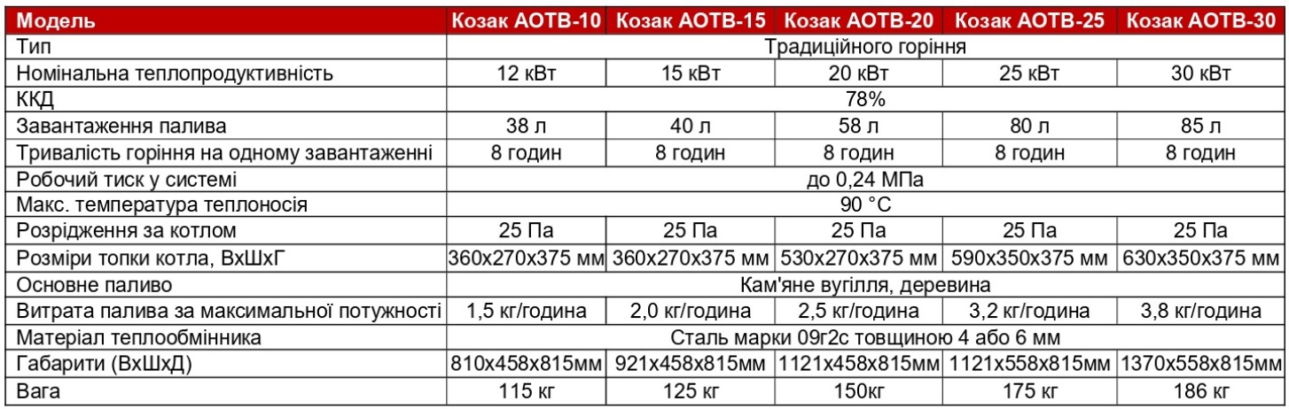 Твердопаливний котел серії Козак від торгової марки «HEATING MACHINES» має в своїй продуктовій лінійці такі варіанти потужностей: 10 кВт, 15 кВт, 20 кВт, 25 кВт, 30 кВт. Особливості котлів Козак ТМ HEATING MACHINES: