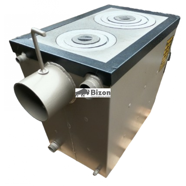 Твердопаливний котел Bizon М-П2, 12 кВт — це ефективне та економічне рішення для опалення приватних будинків, майстерень, автомайстерень, невеликих складських приміщень та адміністративних будівель до 120 м². Він створений для тих, хто шукає стабільне тепло, незалежне від газових або електричних мереж, і хоче мати можливість використовувати різні види палива. Котел здатен працювати на дровах, вугіллі, брикетах, пелетах, трісці, тирсі та навіть деревинних відходах. Це особливо зручно в регіонах, де традиційне паливо доступне не завжди або його вартість коливається. Завдяки об’ємній топці ви зможете рідше підходити до котла — достатньо одного завантаження, щоб система опалення працювала протягом кількох годин безперервно. Корпус і теплообмінник виготовлені з якісної сталі товщиною 5 мм, що забезпечує довговічність та стійкість до високих температур. Це рішення значно збільшує термін служби обладнання. Модель оснащена двома варильними плитами, на яких можна приготувати або підігріти їжу — ідеальне рішення для заміського будинку або дачі без централізованих комунікацій. Твердопаливний котел Bizon М-П2, 12 кВт має просту й продуману конструкцію, яка враховує реальні потреби користувача. Завантажувальне вікно достатньо широке, щоб зручно завантажувати дрова або інше паливо. А процес горіння побудовано так, що паливо поступово згорає знизу, забезпечуючи стабільну подачу тепла й рівномірний розподіл температури. Завдяки механічному управлінню, котел не залежить від електроенергії. Механічний терморегулятор контролює тягу, підтримуючи необхідну температуру без втручання користувача. У разі потреби до котла можна підключити ТЕН — це гарантує тепло навіть у моменти, коли тверде паливо тимчасово недоступне. Котел виготовляється в Україні з урахуванням кліматичних умов та специфіки експлуатації в нашому регіоні. Усі основні елементи — включно з водонаповненими чавунними колосниками — забезпечують ефективне горіння палива та зручне очищення після роботи. У комплекті постачання передбачено все необхідне для старту: Це дозволяє заощадити час і кошти на придбанні додаткових елементів. Якщо ви шукаєте енергонезалежний спосіб обігріти приміщення, не залежати від комунальних тарифів і мати контроль над витратами на тепло, Твердопаливний котел Bizon М-П2, 12 кВт — це саме той варіант, який вас не підведе. ККД до 82% дозволяє максимально ефективно використовувати кожен кілограм палива. Оптимальний розподіл температури, відсутність складної електроніки та надійна механіка роблять цю модель надійним партнером у будь-яку пору року.Твердопаливний котел Bizon М-П2, 12 кВт — надійне тепло для вашого будинку або бізнесу
