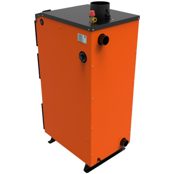 Номінальна потужність котла, кВт 16 Орієнтовна опалювальна площа, м² 80-160 Площа поверхні теплообміну в котлі, м² 2 ККД, не менше, % 88 Тривалість згоряння разового завантаження, годин 8-12 Ємність води в котлі, л 83 Вага котла без води, кг 165 Необхідна тяга димових газів, Па 20-25 Температура димових газів при виході з котла, °С 140-220 Рекомендована мінімальна температура води, °С 65 Максимальна температура води, °С 95 Номинальний (максимальний) тиск води, МПа(бар) 0.25(2.5) Випробувальний тиск води, не більше, МПа(бар) 0.4(4.0) Діаметр патрубків прямої та зворотної води 2" Розмір топки Глибина, мм 455 Ширина, мм 312 Висота, мм 445 Об'єм, л 63 Рекомендовані параметри димоходу Площада перетину, м² 0,013 Внутрішній діаметр, мм 130 Висота (мінімально допустима), м 6 Габаритні розміри котла Висота, мм 1020 Ширина, мм 580 Глибина, мм 820 Комплектація котла
