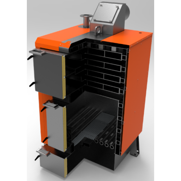 Жароміцна сталь 6 мм. Теплообмінник виготовлений із високоякісної котлової сталі товщиною 6 мм, що гарантує довгий термін служби навіть при інтенсивній експлуатації.