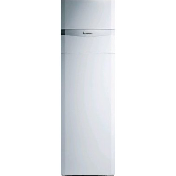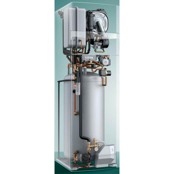 Котел Vaillant auroCOMPACT поєднує в одному корпусі високу ефективність конденсаційного котла, комфорт користування гарячою водою, що дає водонагрівач та можливість використання сонячної енергії. Дана модель котла має потужність 30 кВт, вмонтований внутрішній бойлер на 190 літрів та сонячну станцію "drain back". Головна перевага котла auroCOMPACT - його компактність. Опалювальний прилад має невелику висоту і зручну для сервісу компонування комплектуючих елементів, що дозволяє встановити в тому місці, де це Вам зручно: горище, підсобне приміщення або цокольний поверх. , що продовжує термін експлуатації газового котла. Котли Vaillant auroCOMPACT використовують конденсаційні технології, що дозволяє споживачеві значно зменшити витрати на опалення. Такі технології полягають у тому, що у процесі роботи конденсаційного котла відбирає так звана «прихована» теплова енергія з водяної пари, що виділяється у процесі горіння. ККД конденсаційних котлів становить 107-109% порівняно з традиційними газовими котлами. Вмотрований водонагрівач дає можливість повністю забезпечити гарячою водою домоволодіння. Його ефективність полягає у пошаровому нагріванні води. Така технологія дозволяє дуже швидко нагріти воду, тому водонагрівач завжди готовий давати гарячу воду, навіть після його включення. Водонагрівач утеплений термоізолюючим елементом завтовшки 6 мм, що забезпечує захист резервуара від тепловтрат. Підлоговий газовий конденсаційний котел Vaillant auroCOMPACT VSC INT 306/4-5 190 (30 кВт, вбудований бойлер 190 л.)